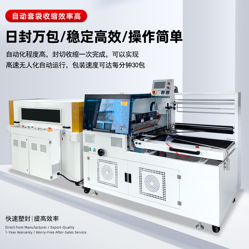 • 自動化程度高:采用 PLC 可編程控制器,配備光電感應裝置,可自動完成輸送、封口、熱收縮等全過程,還可與生產線連接,實現無人化生產。