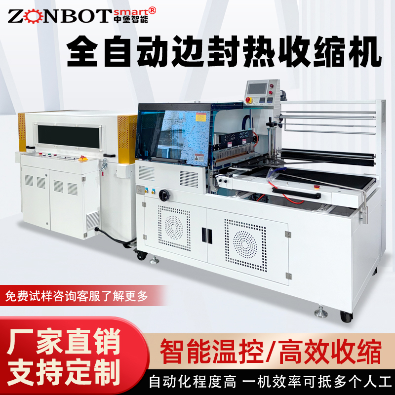全自動邊封熱收縮機是一款通過自動化完成薄膜邊封與熱收縮,實現產品高效密封包裝的設備,核心特點是高自動化、包裝規整、適配范圍廣。 其工作流程可簡化為三步:先通過輸送系統用薄膜裹覆產品,再由恒溫封刀對薄膜側邊進行密封,最后經熱收縮通道使薄膜緊密貼合產品,全程無需人工干預關鍵環節。 設備適用于建材(鋁型材)、印刷(書刊)、電子(充電器)、食品(禮盒)等多行業,能包裝長條、扁平、塊狀等多種形態產品,標準機型每分鐘可包裝 30-60 件,可滿足大批量生產需求。