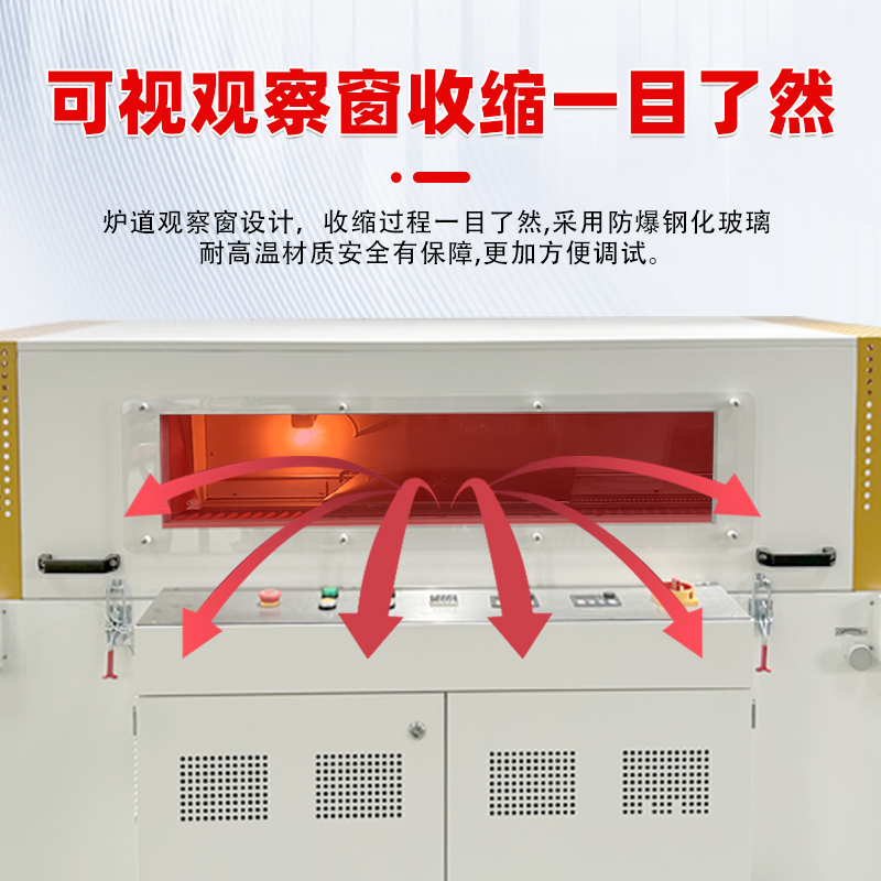 • 可視窗設計:設備設有可視窗,能夠讓操作人員清晰地觀察到收縮過程,便于及時發(fā)現和調整包裝過程中出現的問題,確保包裝質量。