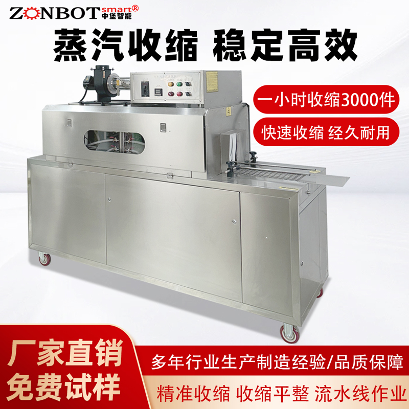 設備采用內嵌式蒸汽發生模塊,摒棄傳統分體式設備的外置蒸汽發生器設計,將蒸汽制備、輸送、收縮環節高度集成在同一主機框架內。這種設計不僅大幅壓縮設備整體占地面積(相比分體式方案節省 30%-50% 空間),還省去了蒸汽管道的鋪設與密封工序,從根源上降低蒸汽泄漏風險,適配狹窄車間、流水線嵌入式工位等多種布局場景。